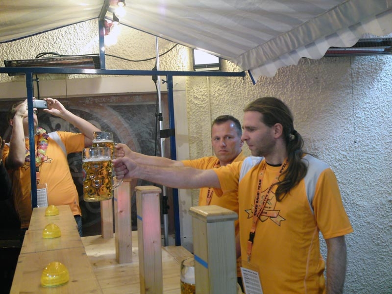 Als Zweite Disziplin machte ich das Maßkrugschieben und konnte leider nur 3 von möglichen 10 Punkten erzielen. Auch die darauf folgenden Disziplinen bei denen es hauptsächlich um Krampf ging, Maßkrugstemmen und Hau-den-Lukas war ich in meiner Gewichtsklasse weit vorne, allerdings insgesamt wohl eher hinteres Mittelfeld, sodass auch die letzte Disziplin Kuhmelken bei der ich wieder mit 900ml in 1 Minute recht gut Abschnitt nicht für einen Platz unter den ersten 2 reichte.