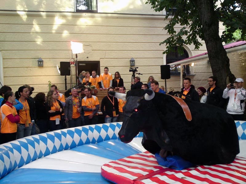 Die Disziplinen waren Bullriding, Hau-den-Lukas, Maßkrugstemmen, Maßkrugschieben und Kuhmelken. Am Ende mussten die Zwei, die sich am besten durch die Disziplinen geschlagen hatten bei einem Spassquiz den Sieger unter sich ausmachen.