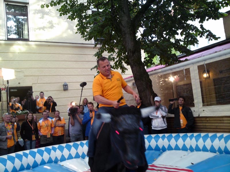 Die Disziplinen waren Bullriding, Hau-den-Lukas, Maßkrugstemmen, Maßkrugschieben und Kuhmelken. Am Ende mussten die Zwei, die sich am besten durch die Disziplinen geschlagen hatten bei einem Spassquiz den Sieger unter sich ausmachen.
