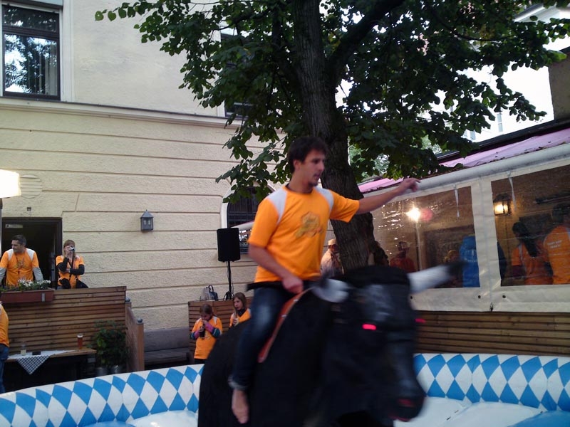 Die Disziplinen waren Bullriding, Hau-den-Lukas, Maßkrugstemmen, Maßkrugschieben und Kuhmelken. Am Ende mussten die Zwei, die sich am besten durch die Disziplinen geschlagen hatten bei einem Spassquiz den Sieger unter sich ausmachen.
