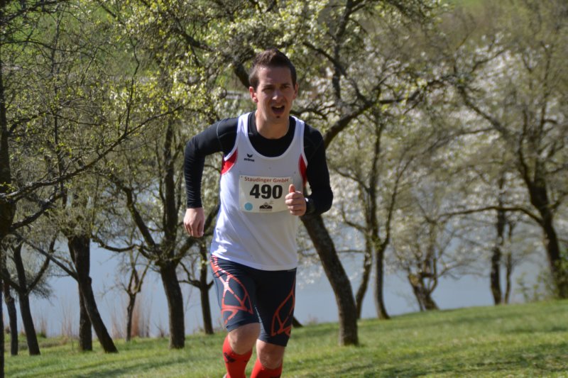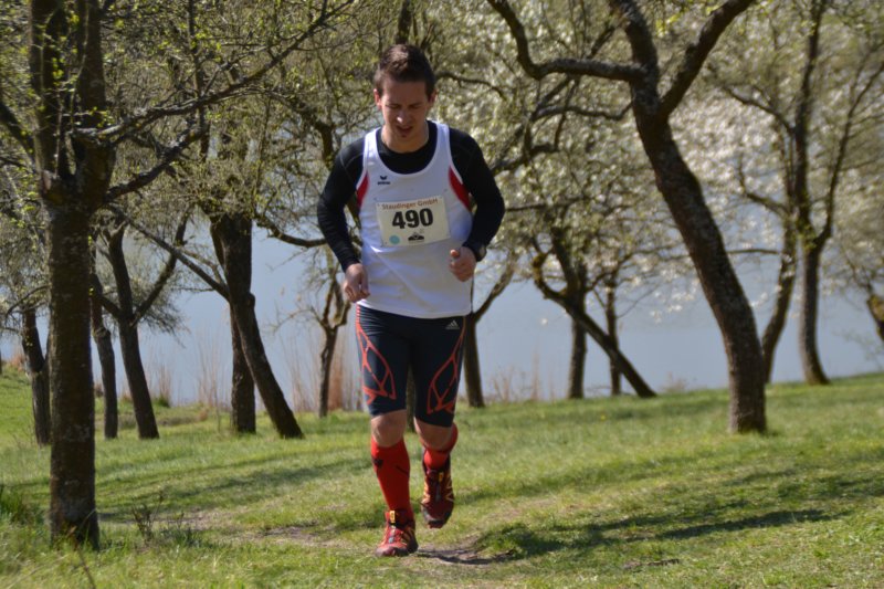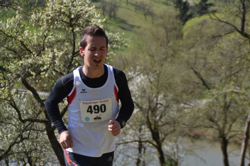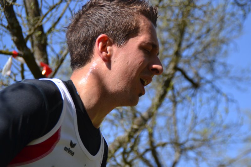 Oben angekommen, hängte ich mich an ihn dran und hatte zeitweise Probleme zu folgen. Auf Abwärtspassagen schloss ich immer auf, was ich vorher verlor. Auf einem flachen Straßenstück unterhielten wir uns kurz und ich fand heraus, dass es seine erste Teilnahme war und seine Bestzeit auf 10km 37:30 Min. betrug. Demnach wäre ich wohl ein bisschen stärker, obwohl mir das aktuell überhaupt nicht so vorkam, denn er bestimmte klar das Tempo. Bis zum Ende der ersten Runde blieben wir beieinander und er erweckte den Eindruck mich wohl auf der zweiten Runde abhängen zu können. Umso überraschter war ich, als ich ihn nach der letzten Rampe vor dem Start/Zielbereich langsam aber sicher abhängte.