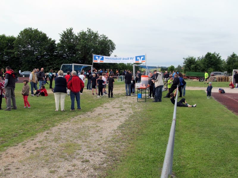 Warm lief ich mich zusammen mit Andreas May, der am Vortag Zweiter beim 5 Kilometerlauf in Weiltingen wurde. Wir liefen einfach ca. 10 Minuten am Sportgelände im Kreis. Dann noch kurz ein bisschen dehnen und überschüssige Klamotten ausziehen und ab zum Start.